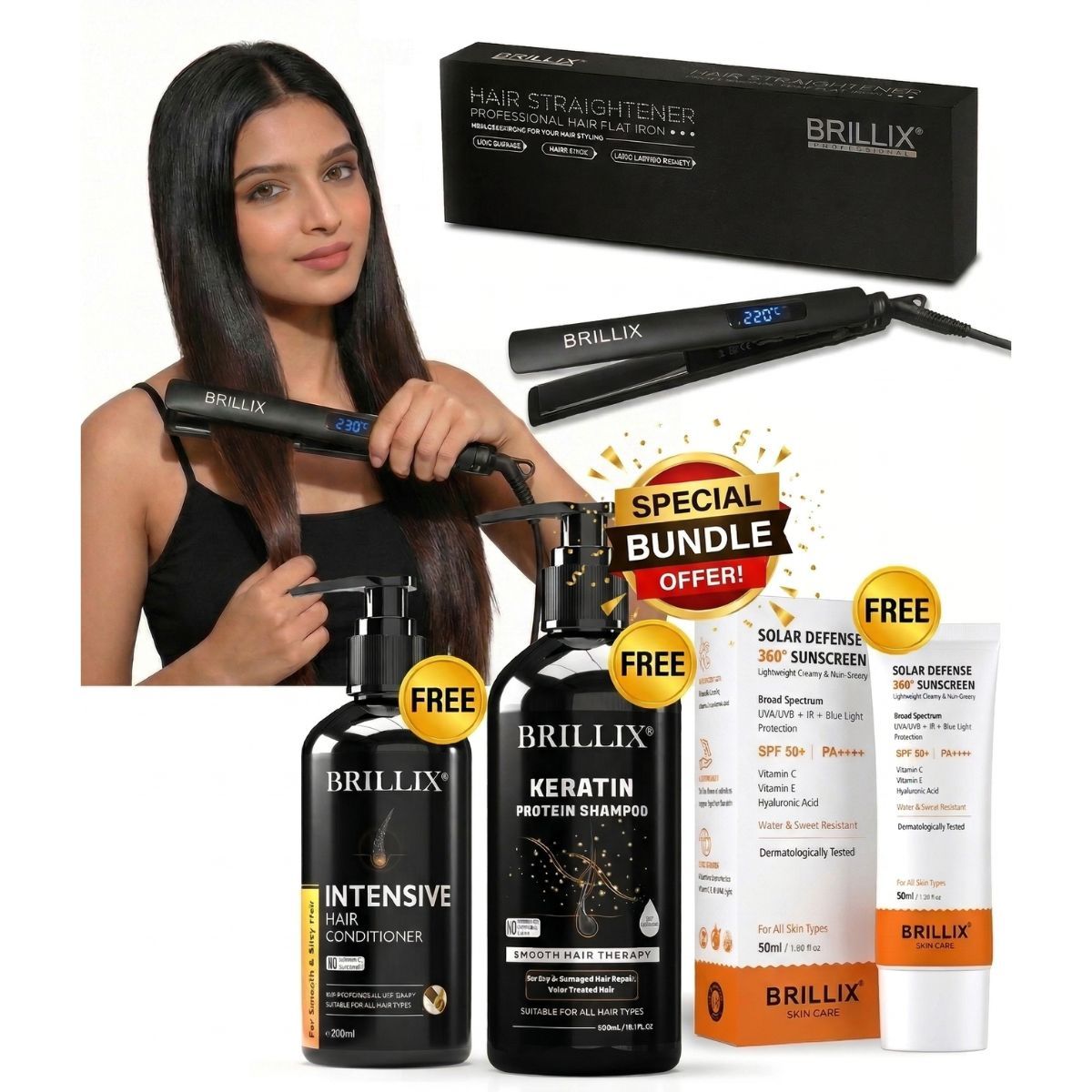 BRILLIX Professional Pro Ceramic Hair Straightener (HS-958A1) | SHAMPOO + CONDITIONER + SUNSCREEN FREE