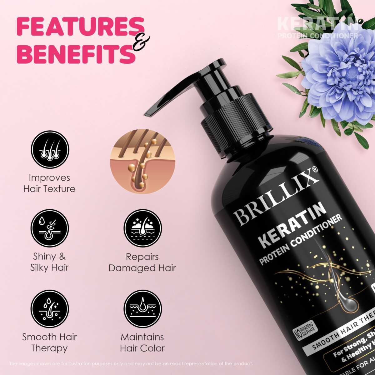 - BRILLIX Conditioner, formulated with natural ingredients like KERATIN PROTEIN, helps to make your hair Shiny, softer, smoother, and easier to manage.