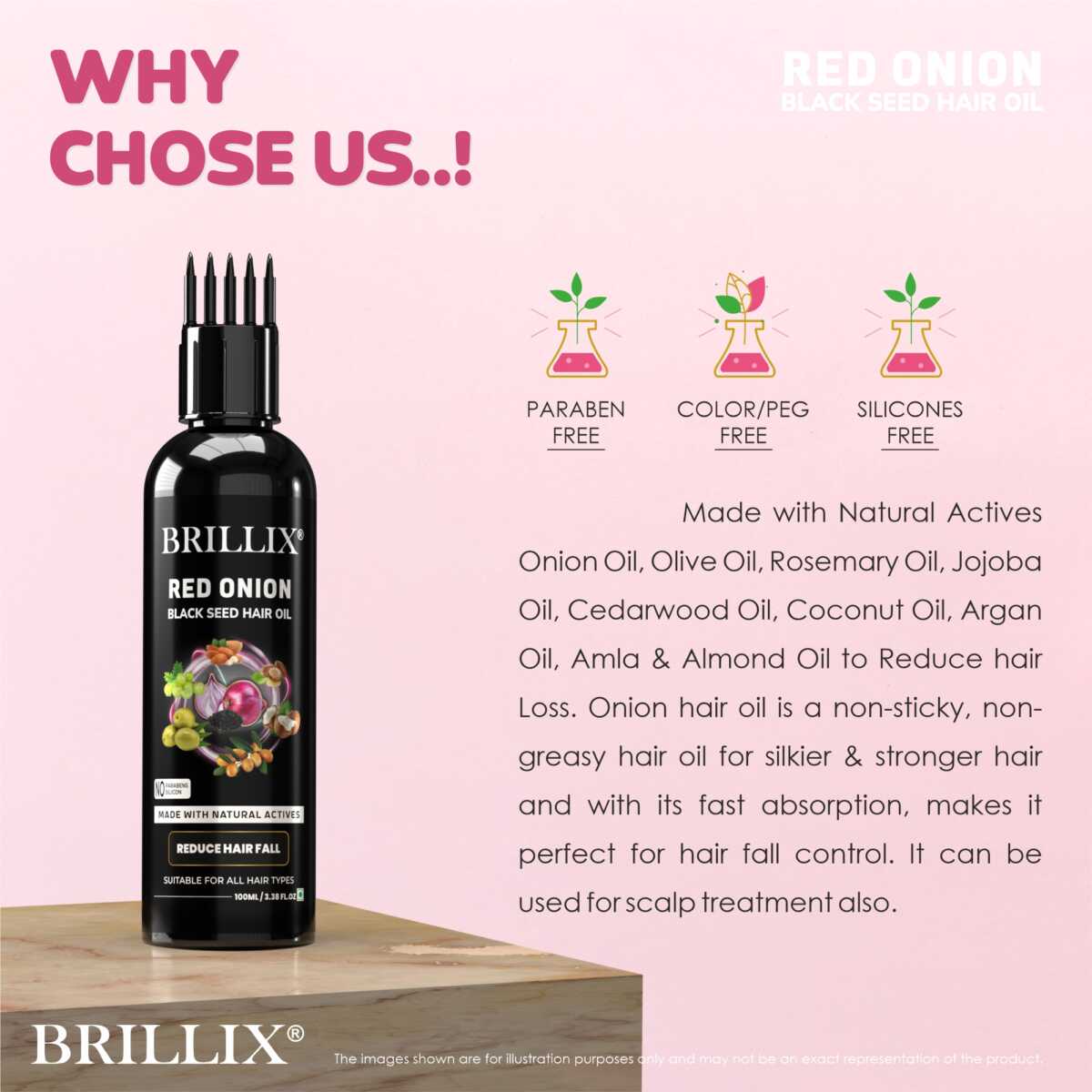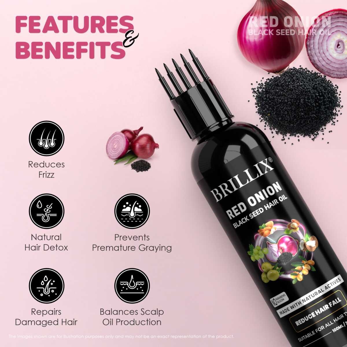 - BRILLIX Hair oil, formulated with natural ingredients like RED ONION BLACK SEEDS helps to nourish the scalp, reduce hair fall, and helps Hair damage repair.