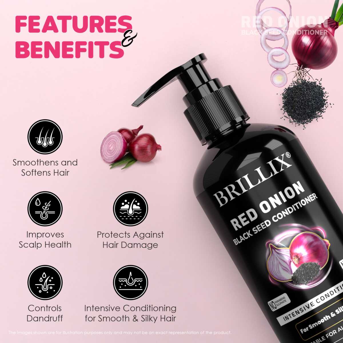 - BRILLIX Conditioner, formulated with natural ingredients like RED ONION BLACK SEED, helps to make your hair Shiny, softer, smoother, and easier to manage.