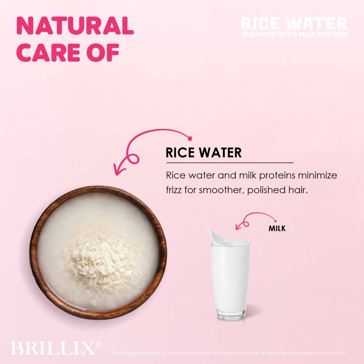 • BRILLIX Shampoo, formulated with natural ingredients like RICE WATER WITH MILK PROTEIN, helps Nourish your scalp and promote Healthy & Stronger